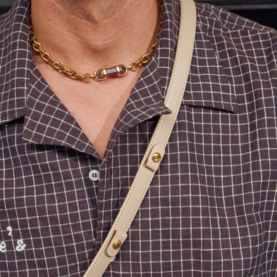 Meet Alchemy a bold, unisex statement choker designed to stand out and elevate energy. Featuring a chunky chain and a horizontally crowned, double-terminated crystal, this piece embodies transformation, strength, and higher self vibe.