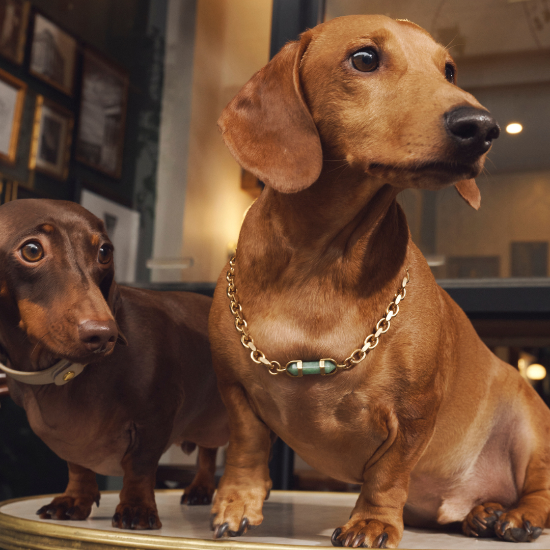 Available in two sized extension lengths (35cm and 42cm), Alchemy is also Fur Friendly, perfect for the most fashionable pups. Worn as a style statement (never a collar replacement), it’s a modern expression of connection and cool, for humans and their soul dogs alike.