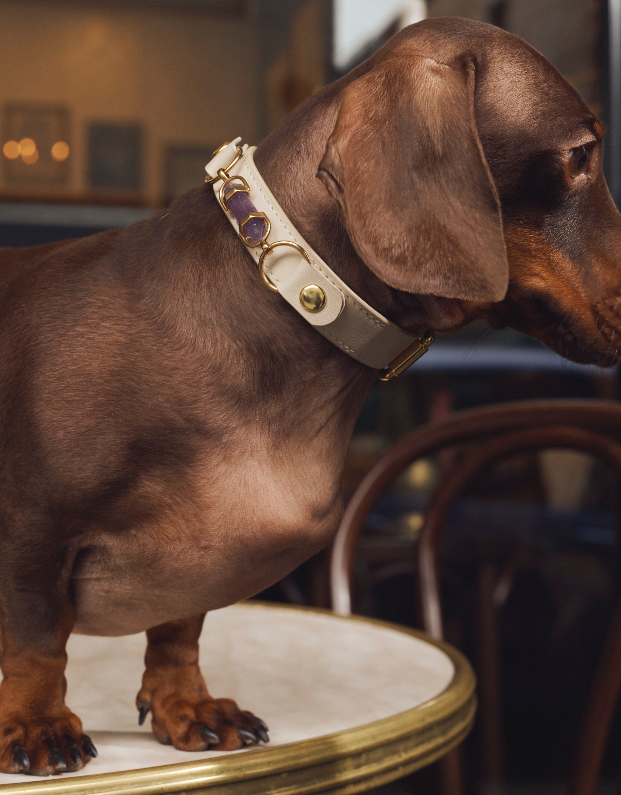 A true classic, the Soul Dog Collar blends timeless design with elevated simplicity. Crafted from premium animal cruelty-free materials, it features subtle embossed branding at the tip and a polished snap-button detail for effortless attachment and interchange of your Aura Crystal Charm for individual customisation and updating.  Thoughtfully designed to reflect and protect your soul dog's unique energy, with style, ease, and intention.